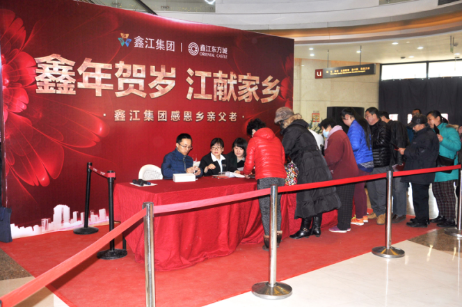 2017年1月23日,距離傳統(tǒng)新年還有4天,鑫江集團(tuán)在鑫江東方城舉辦” 鑫年賀歲,江獻(xiàn)家鄉(xiāng)”大型公益活動(dòng)。回饋相親不忘恩,回報(bào)社會(huì)不忘情。鑫江集團(tuán)副總經(jīng)理趙文博先生來到現(xiàn)場(chǎng)為秦家小水社區(qū)的居民發(fā)送東方城購(gòu)物卡作為新春賀禮。