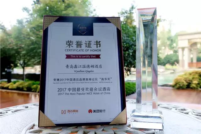 青島,2017年9月——青島鑫江溫德姆酒店榮獲由“酒店高參”舉辦的2017首屆高參獎“最受歡迎會議酒店”
