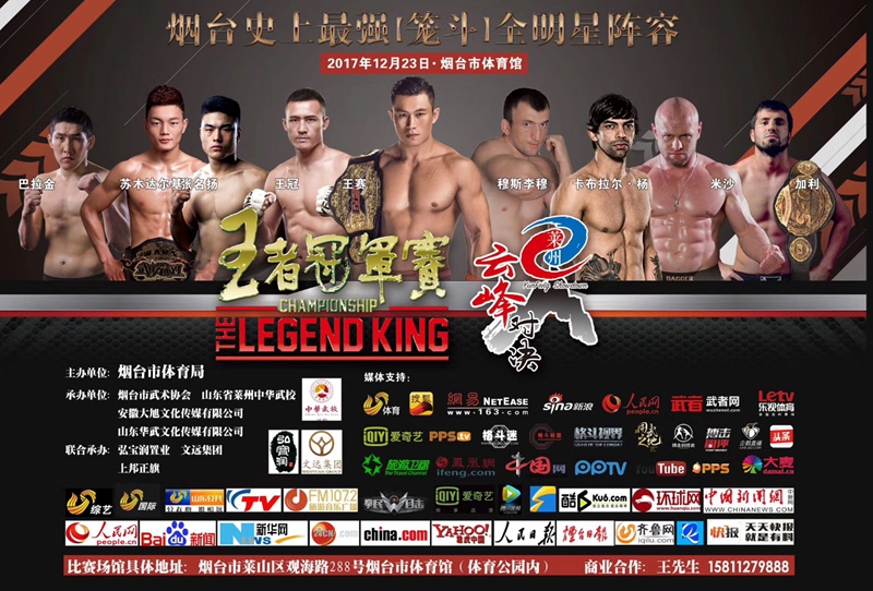 2017年12月23日,由山東省煙臺市體育局主辦,萊州中華武校和安微大旭文化傳媒有限公司承辦的,頂級MMA綜合格斗賽事“王者冠軍賽-云峰對決”,在煙臺為廣大觀眾帶來了一場國際水準(zhǔn)的MMA綜合格斗大戲,14場激戰(zhàn),國際頂尖實力的中外名將捉對廝殺,來自全國各地的近5000名觀眾現(xiàn)場觀看比賽,比賽采用觀眾最刺激的籠中格斗,廝殺激烈,精彩不斷,引得觀眾情緒激昂,火熱爆棚。