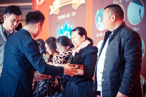 在精彩表演的過程中,一輪又一輪令人血脈噴張、激動人心的抽獎直接點燃了來賓們的熱情。愛瑪電動車、天然乳膠枕禮盒、藍月亮洗衣液禮盒等禮品進行現場抽獎,花落各位幸運得主,引來陣陣歡呼!