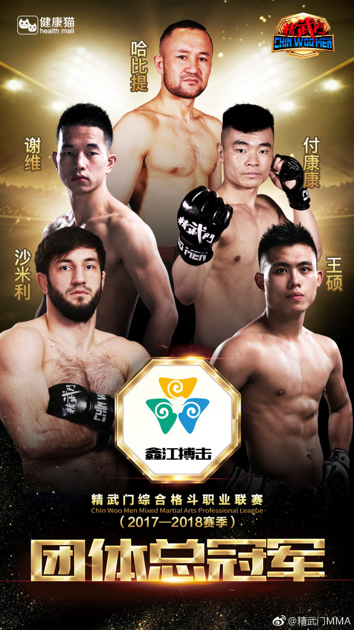 鑫江搏擊力克鑫度武術成功問鼎,摘得精武門綜合格斗職業聯賽(2017-2018賽季)第二屆團體冠軍!