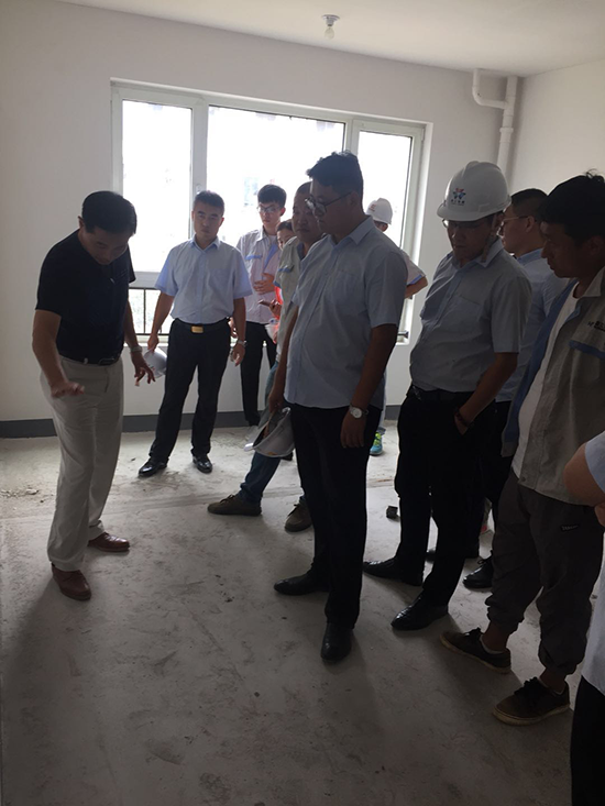 2018年8月27日下午,胡冶明老師在集團行政人事部總監張代君陪同下,帶領精裝修部、設計部、成本部及鑫興泰等相關人員一起參觀了花都四期、玫瑰園二期和合院售樓處,并現場對相關問題進行了技術指導及現場答疑。
