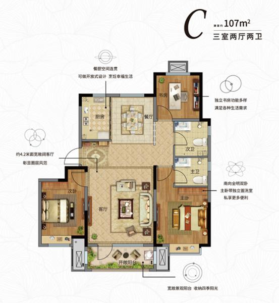 花漾里匠心打造建面約80-85㎡舒適兩居室和約97-107㎡全能大三居,均打造南北通透全明戶型,坐享清風(fēng)明月,一覽室外風(fēng)華,盡享舒適人生。