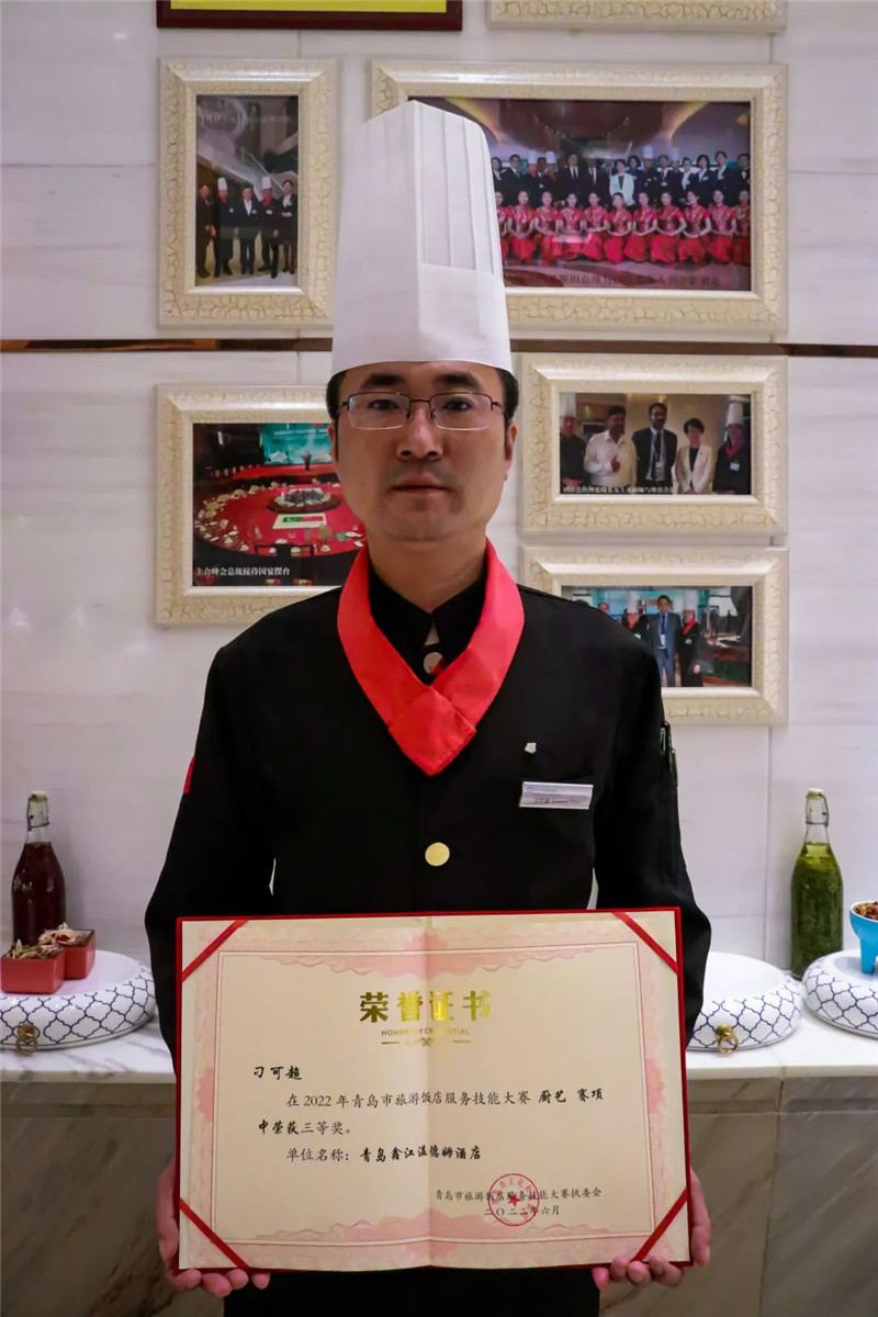 青島鑫江溫德姆酒店參加了中餐擺臺、中式鋪床和廚藝,酒店中餐和宴會廚師長刁可超,榮獲青島市旅游飯店服務技能大賽廚藝賽項三等獎第一名。