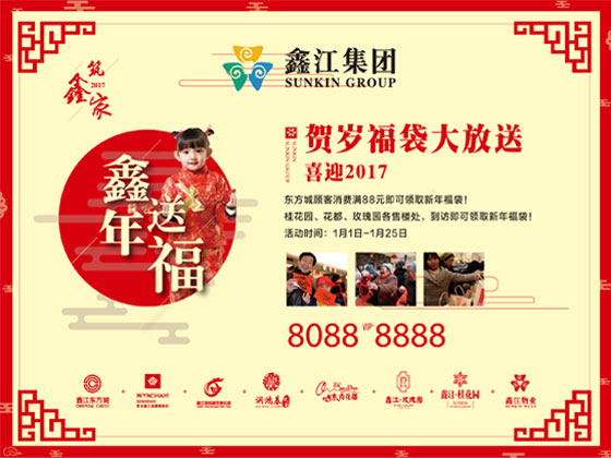 2016轉(zhuǎn)眼即逝,奏響了2017的新篇章,回首過去20載,鑫江集團立足城陽南,與城市并肩一路同行! 值此佳節(jié)來臨,為感謝您的多年支持陪伴,鑫江集團重磅四重驚喜,傾城來襲,恭祝島城人民新年快樂。