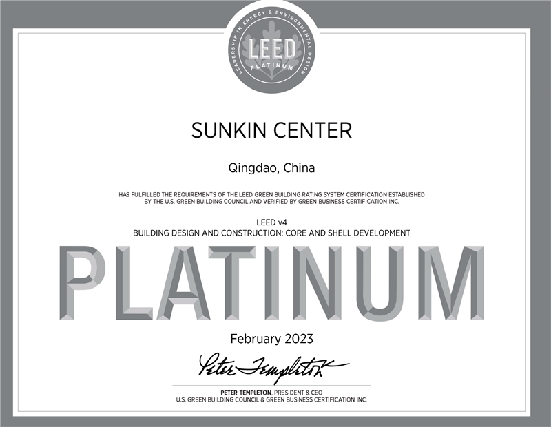 LEED鉑金級認證——綠色建筑界“奧斯卡獎”的最高級