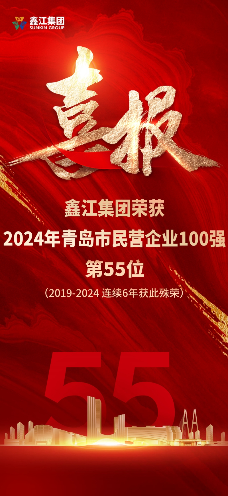 喜報|鑫江集團榮獲“2024年青島民營企業100強”